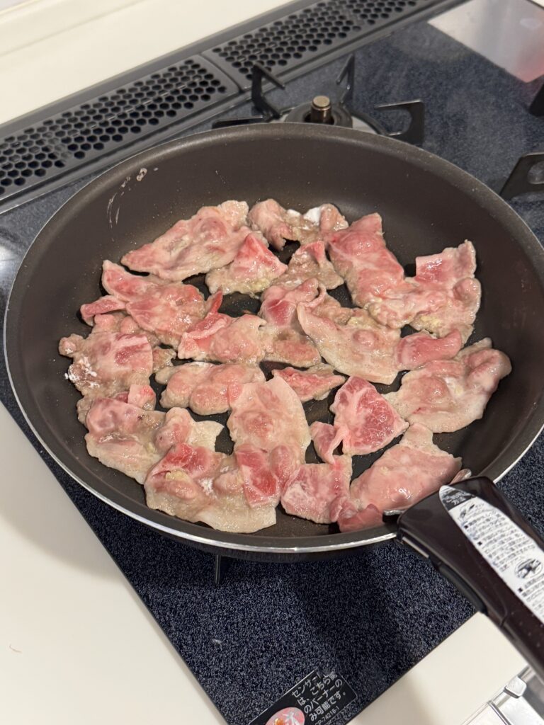 肉には生姜汁をかけて、片栗粉をまぶしたものを炒めます