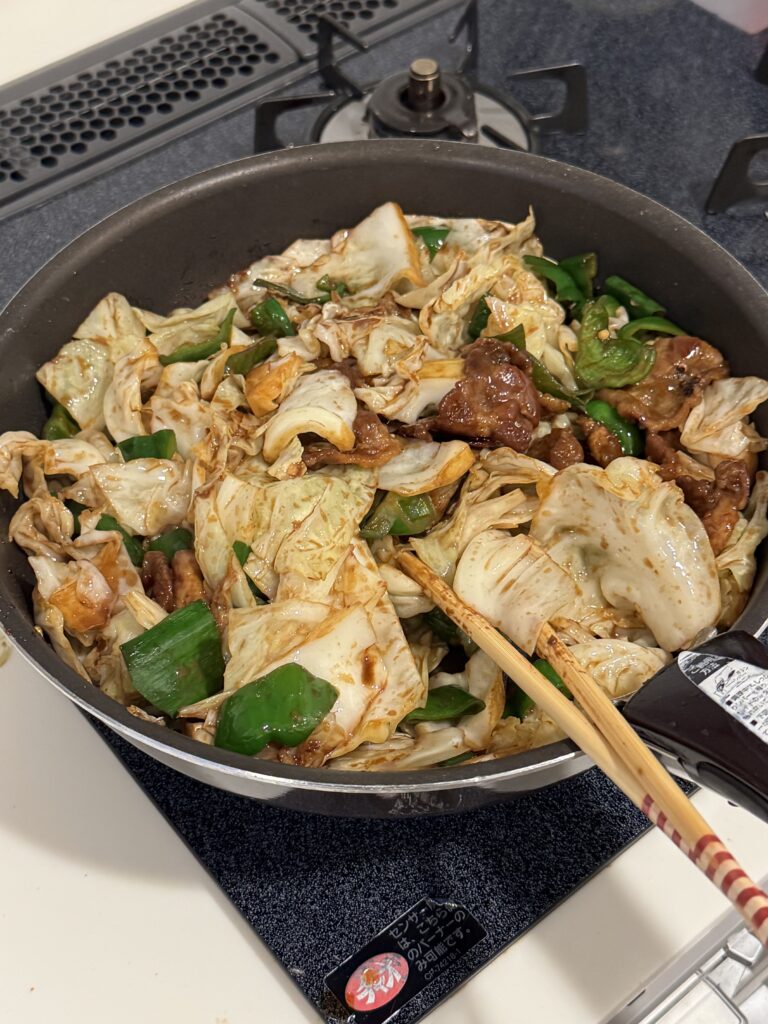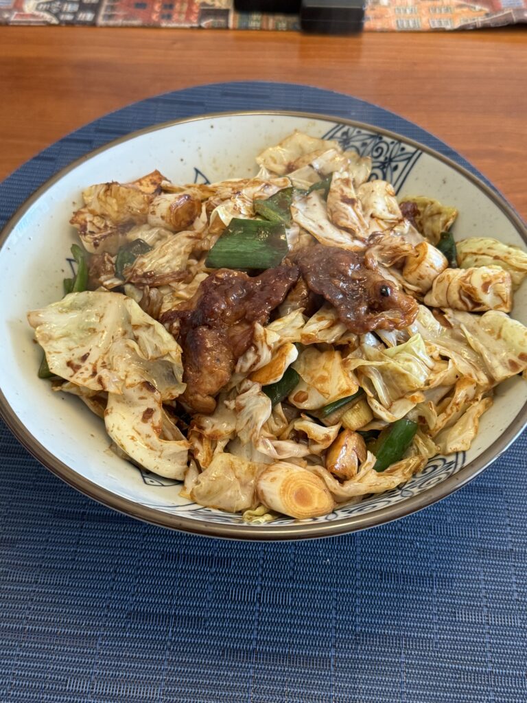 塩分は、醤油小1と甜麺醤大1.5のみですから、とても薄味 キャベツの甘みが引き立てられて、いつまでも食べられそうな味に仕上がりました