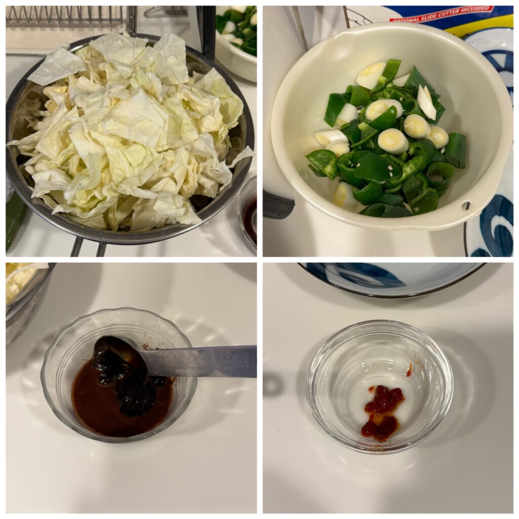 左上 キャベツは思い切って半玉ざく切りにしてボールに用意しました