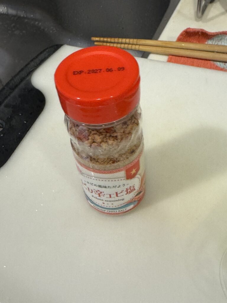 写真左側の調味料、カルディでタイのエビ塩ふりかけを買ってきました