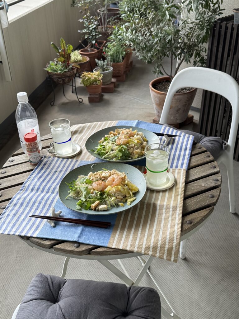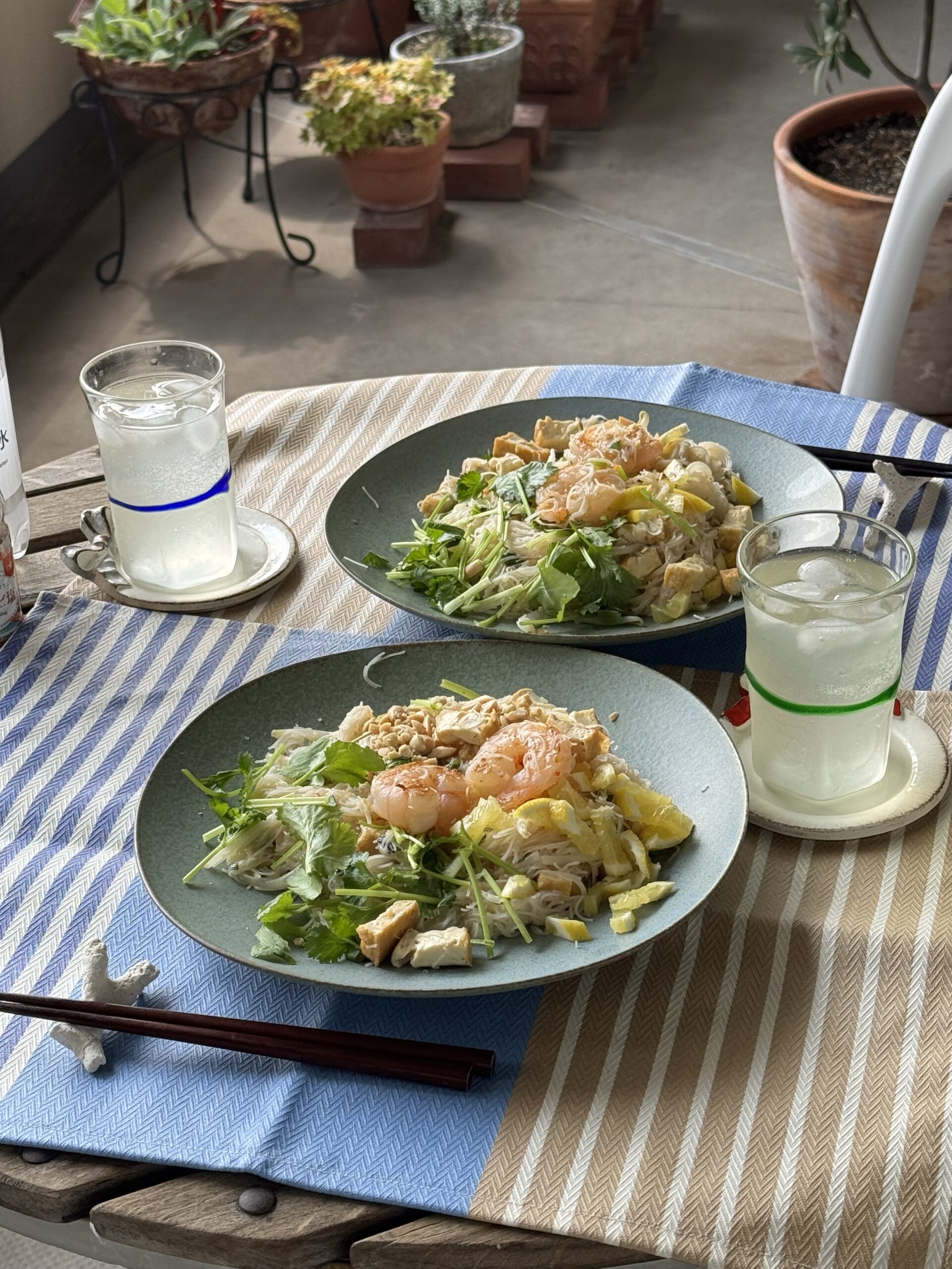 だいぶ暖かくなってきました ベランダランチができるようになって、ありがたいです 昨日は、パッタイを作り楽しみました