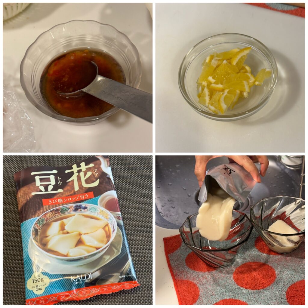 左上 合わせ調味料は、ナンプラー大1、オイスターソース小1、砂糖小2、スイートチリソース大1、レモン汁大3