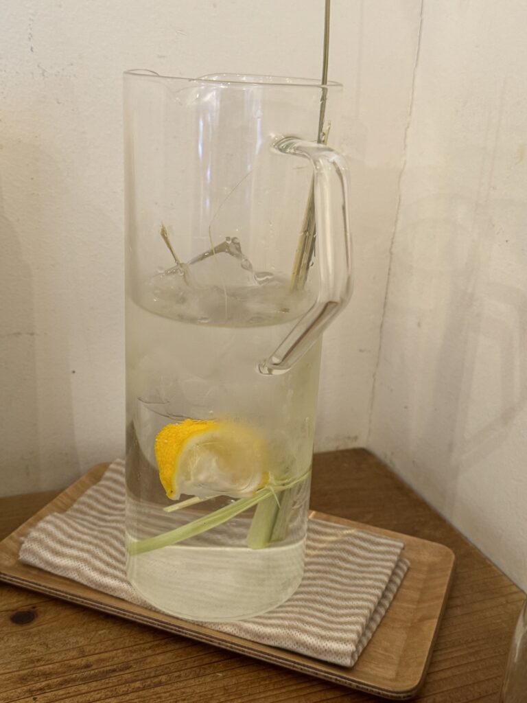 各テーブルには、レモンとレモングラスが入ったピッチャーが置かれています 個人的に、カレーにはお水が合うと思ってるので、常温のお水が準備されているのはとてもありがたいです