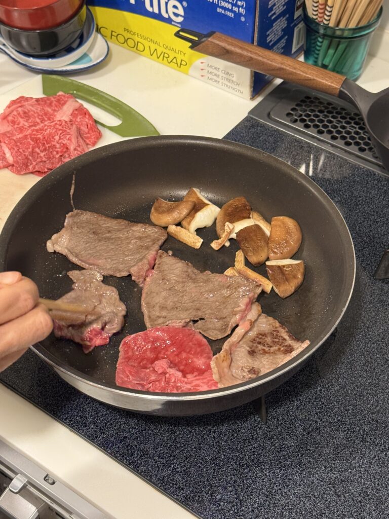 また、いつも行かせてもらっている松本ミートで、すき焼き肉が安くなってたので、買ってみました 鹿児島の黒毛和牛のもも肉 あまり脂分が強くなく食べやすかったです