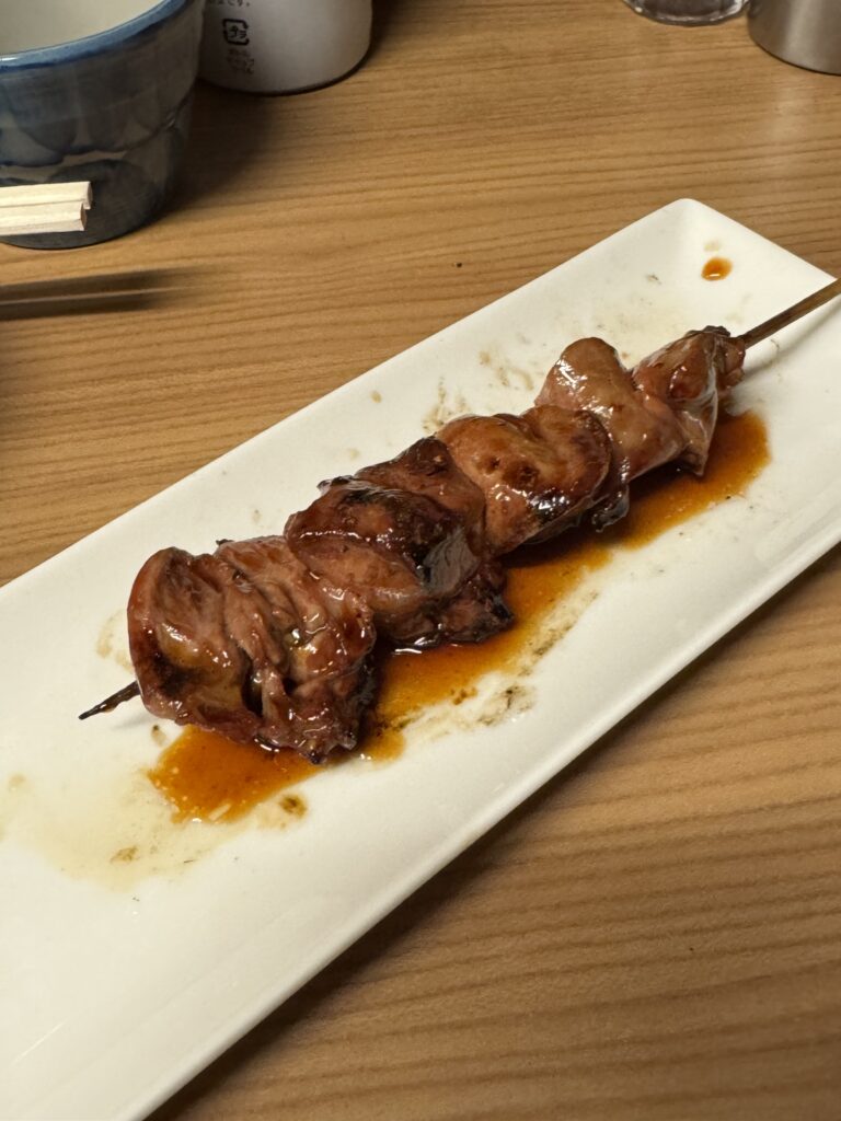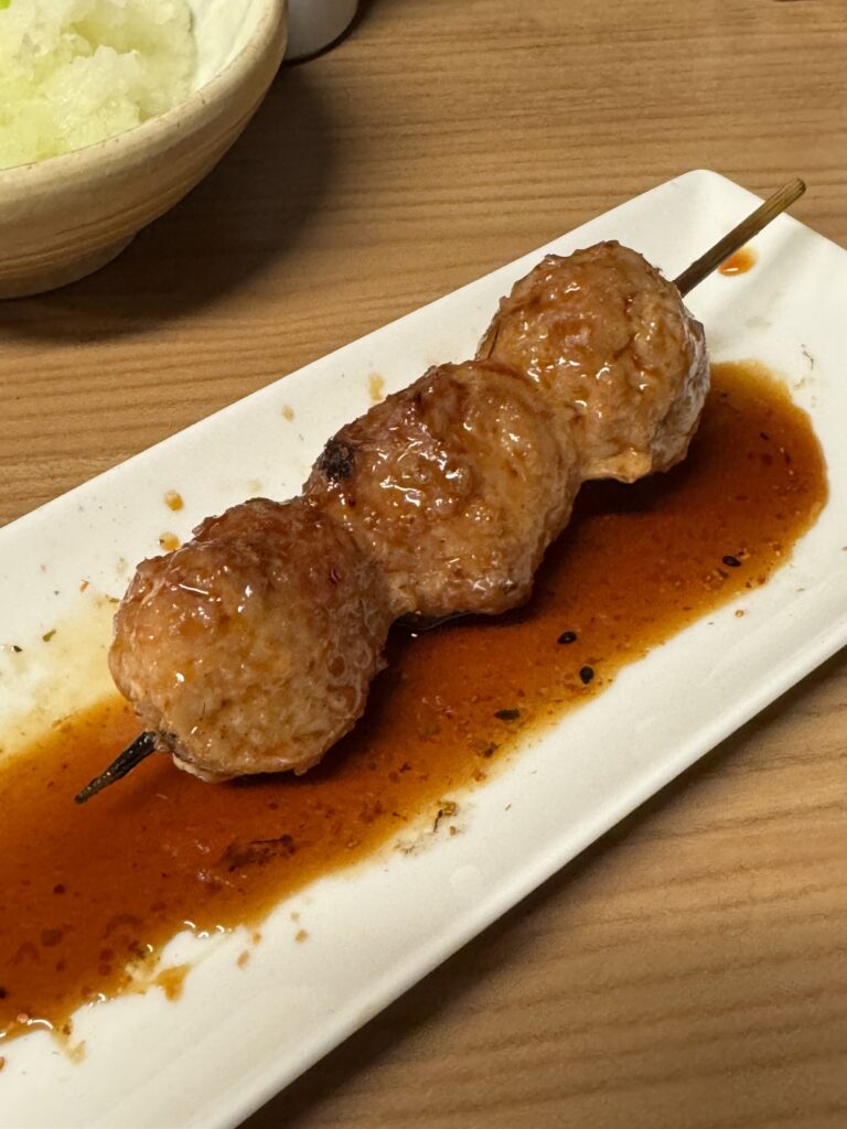 軟骨が少し入っているツクネは、口に入れ噛むとコリコリとした食感が楽しかったです タレが濃いのですが、鳥の旨みが負けておらず、とても美味しかったです
