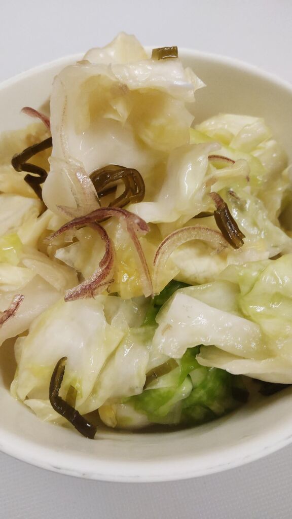 最初におかわり自由のキャベツと玉ねぎの塩昆布和えが供されます 懐かしい味でした