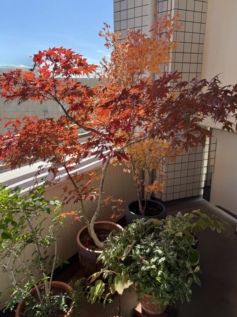 中古のマンションを買って17年 買った当時に苗木を鉢植えしたもみじやヒイラギ、トネリコなど元気に育っていますが、鉢を少しずつ大きくして活性化してあげないといけませんね