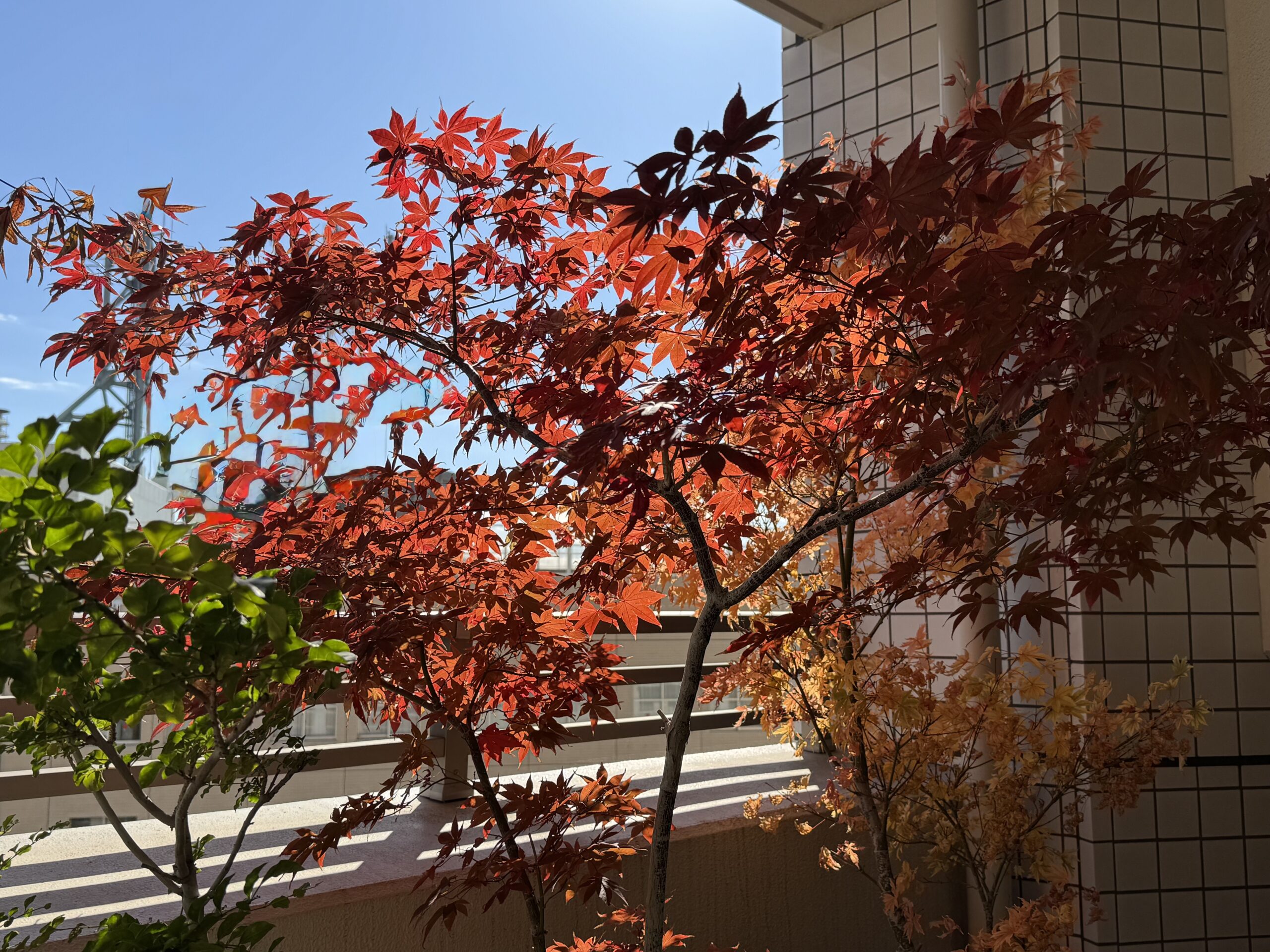 ちょっと前に色づいたもみじでしたが、だいぶ葉を落としてきました これからベランダの掃き掃除が大変です!