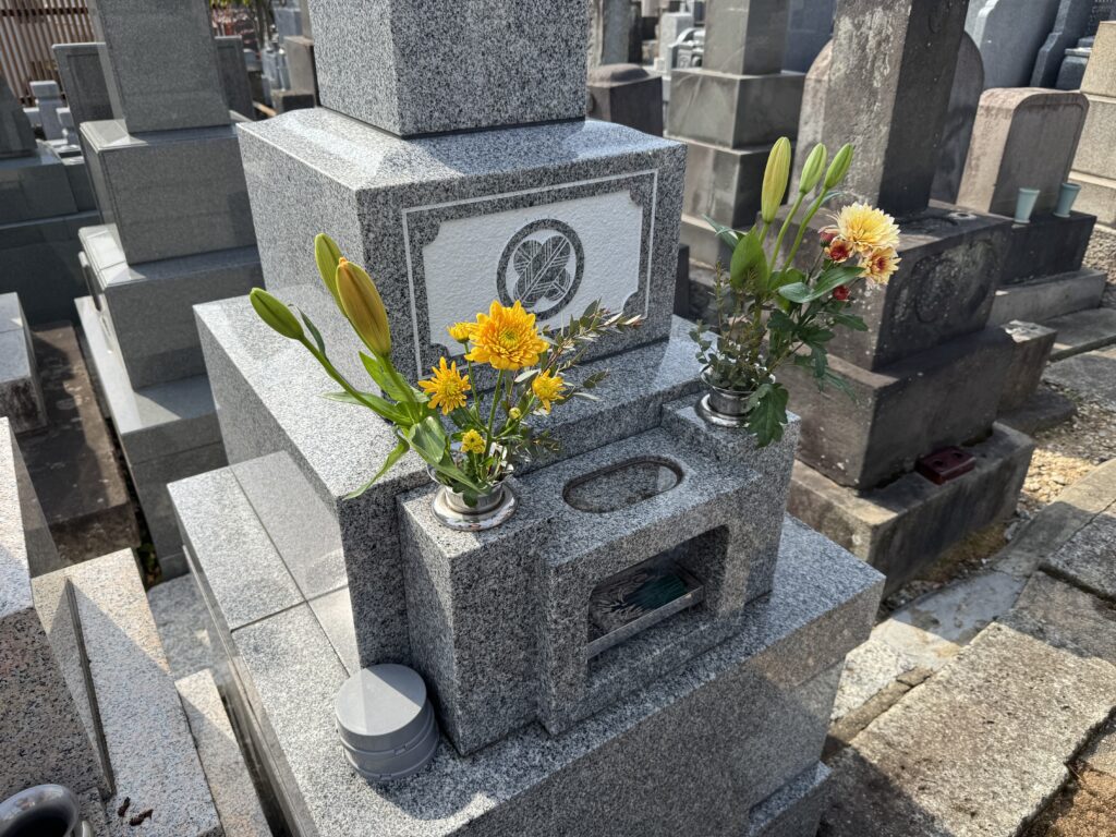 同じ墓地にファッションデザイナーの有名な方が眠っておられ、時期ごとに百合の花を供えてあります 今日は我が家も百合の花を備えて両親に華やいだ気分になってもらおうと考えました