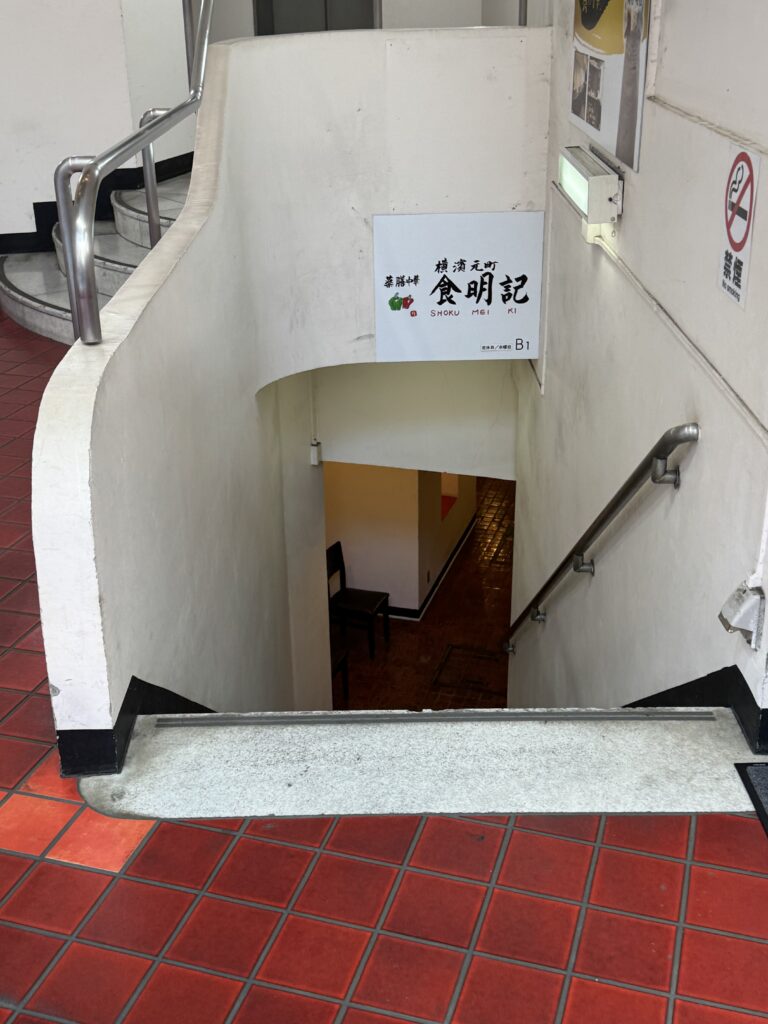 かばんのキタムラ本店の隣のヴィスタリア元町ビルの地下に食明記があります 割と急な階段を降りていくと、かなり広い空間がありました