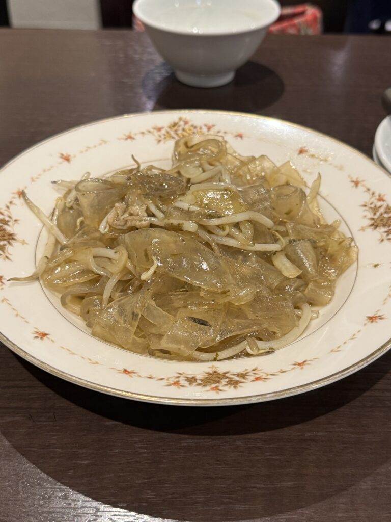 メインは、妻と二人、板春雨の香り炒めと中華丼を小皿で分け合って食べました
