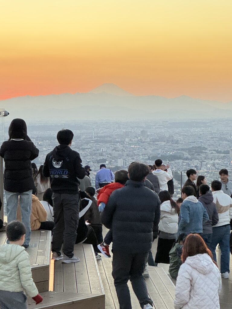 東京の日の入りが16:53であることを確認し、仕事場を16時に退ければ間に合うと勘定し、渋谷に向かいました 渋谷は帰宅途中の乗り換え駅 渋谷の高層ビルの屋上から冬の富士山を見てみたいと思いました
