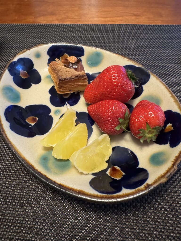 いちごと合わせて早春のデザートにしました 甘いアーモンドパイと合わせると、ちょっと高級なデザートになります