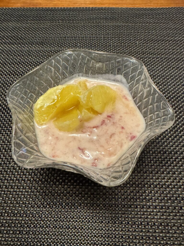 見た目はとても地味ですが、酸味のある湘南ゴールドと甘く味付けしたいちごヨーグルトを交互に食べると、味変の妙で、無限ループにハマったようになります