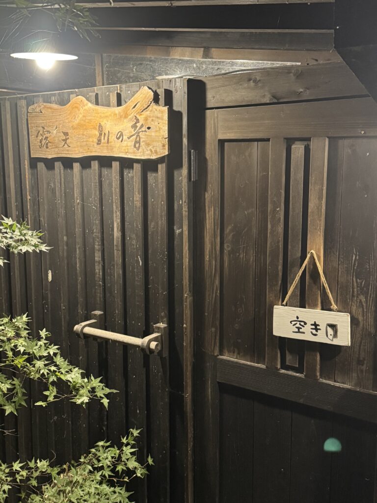 1日3組しか客がいないので、貸切湯の露天風呂は、常時「空き」の表示になっていました 到着後、食事前、夜中、いつでも「空き」でした