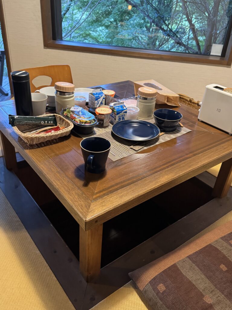 ステンレスの水筒に入ったキノコのスープが秀逸 別の水筒に入ったコーヒーもとても美味しく、朝の部屋食もなかなかいいもんだと思いながらゆっくり過ごしました