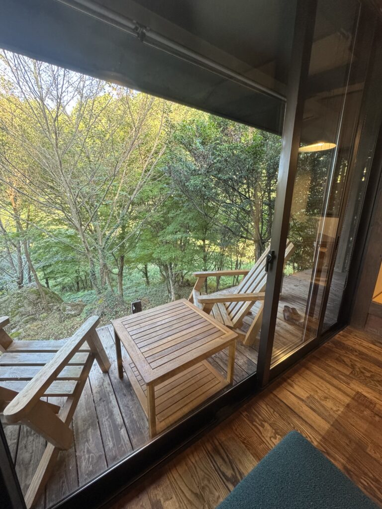 一棟貸しらしく、部屋が広くて使いやすい&部屋風呂は内風呂ながら外のデッキに出られる仕組み