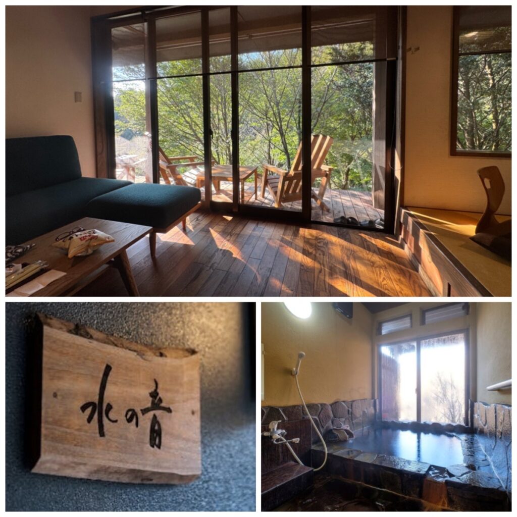 風のテラス古天神という1日3組だけを受け入れる宿 空の音、月の音、水の音という敷地内棟貸しスタイル 調べると、素泊まりと朝食のみの2種類の宿泊が選べ、夕食の提供はないとのこと これは、興味深いと思い、3ヶ月+1日前に電話で予約を申し込みました