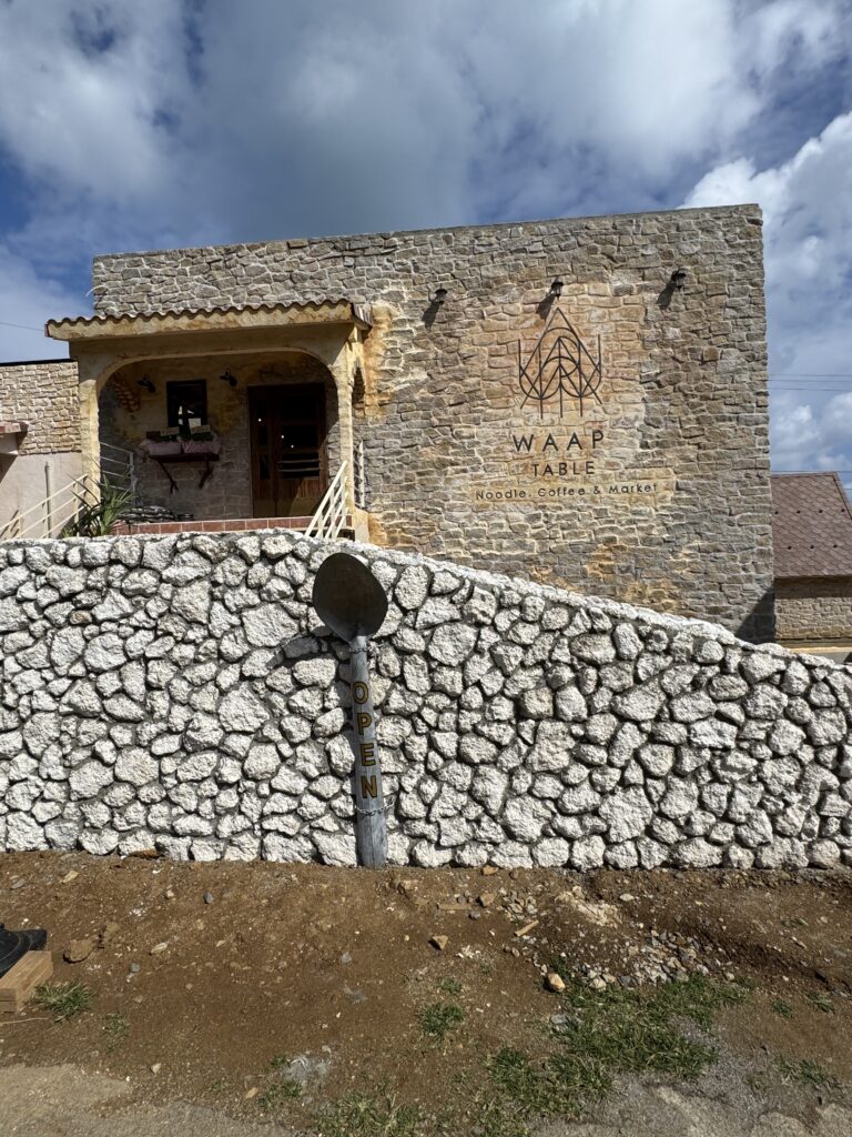 一部まだ建設中の外観でしたが、壁にWAAP TABLEとあり、Noodle, Coffee & Marketと書いてあります へえ、良さそうと思いながら入ると、とても清潔な中に導かれました