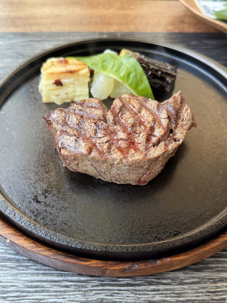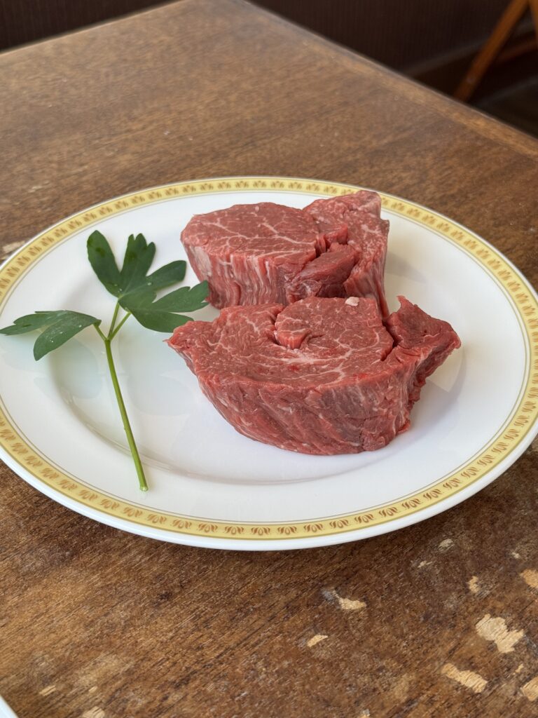 注文するとシェフが席に来て肉を見せてくれます 昼ごはんやカフェで食べてたので控えめに160グラムを頼みましたが、まあまあの量です