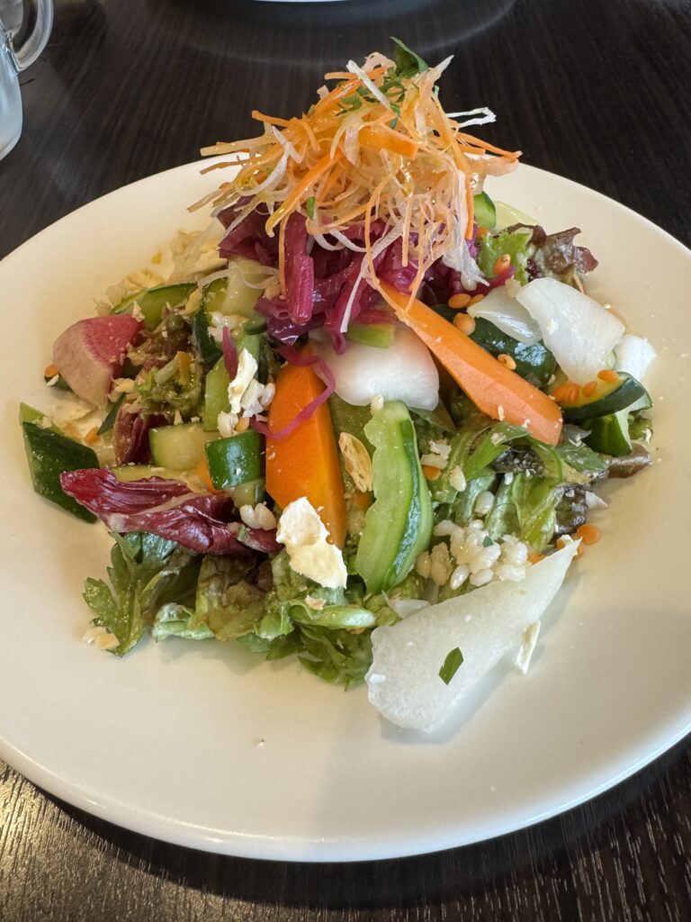 ドレッシングをさぁーっとかけたサラダではなく、野菜を塩麹に漬けて少し寝かせて、しっとりさせたようなサラダで、食べ応えがあります 個人的には、とても好きな味でした!