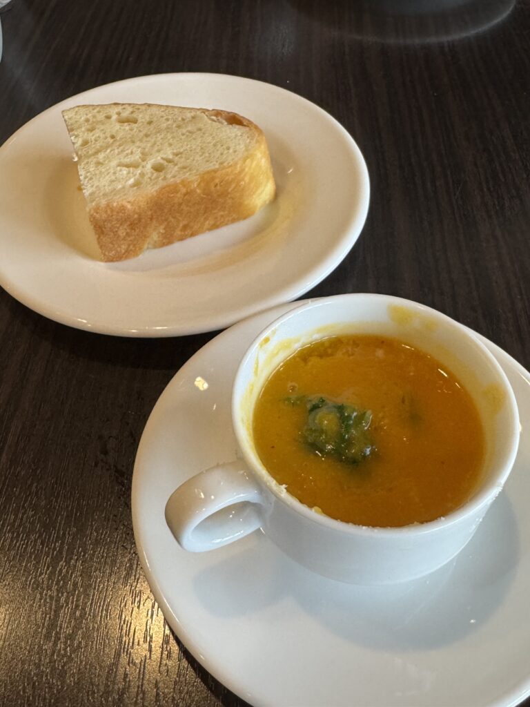 バタースカッシュの裏漉しスープと自家製フォカッチャ