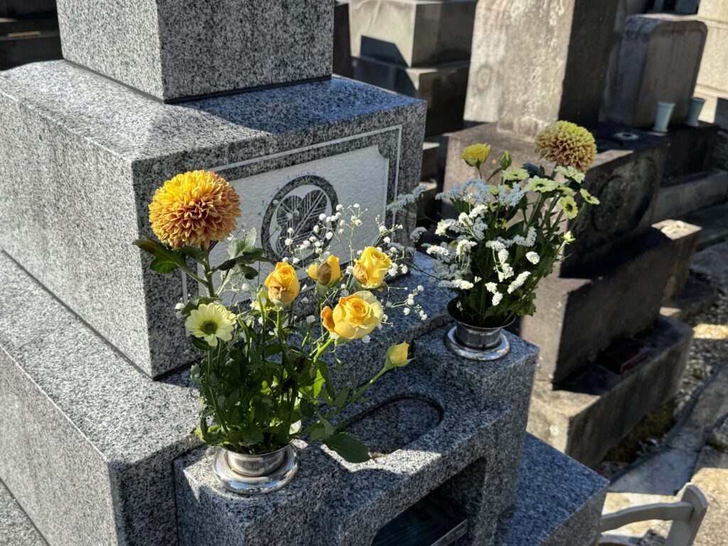先月は、法事で帰省した折、故郷の先祖代々の墓に参りましたが、東京のお墓も花を変えて、きれいにしました