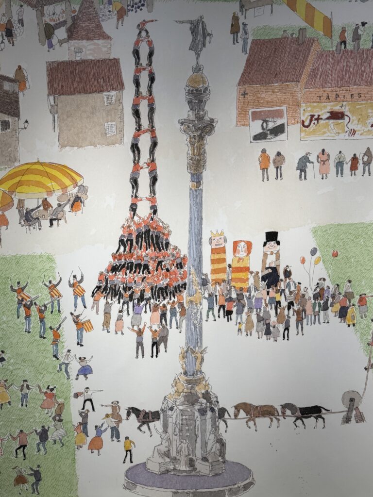 バルセロナの祭りですね この右にサグラダファミリアが描かれています