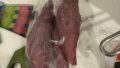 左上 半分のりんごを使います 櫛形に薄く切っておきます