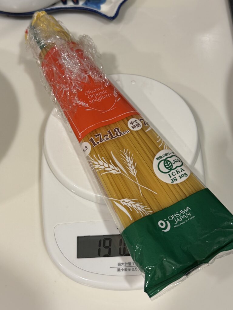最近お気に入りのイタリア製のパスタ 有機栽培の小麦粉 もっちりした食感がなかなか良いです 新しいのを買ったけどちょうど190グラム残ってました 今回はこれで足ります^^