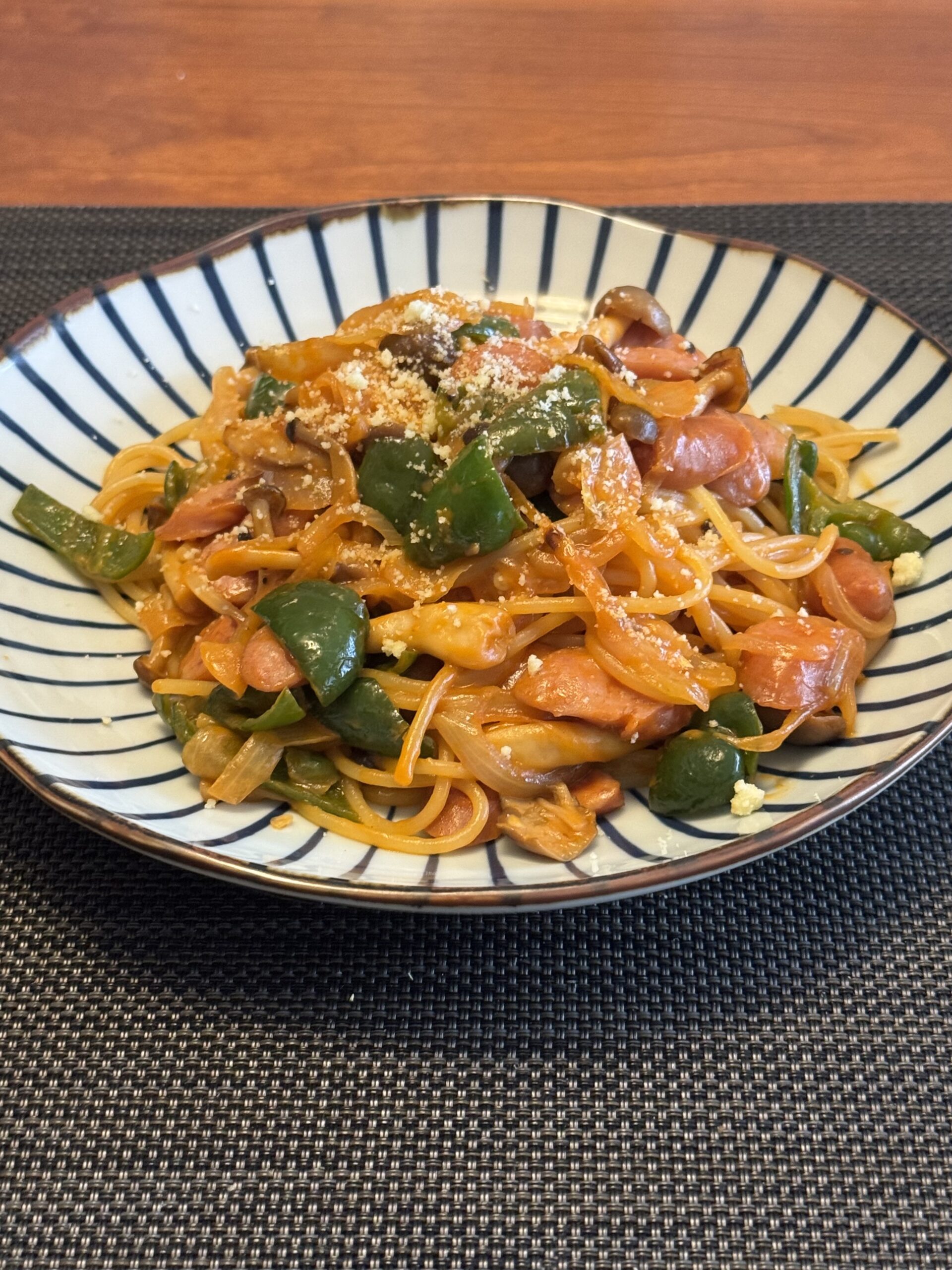 今日のランチ当番はナポリタン いつも通り、美味しくできました!