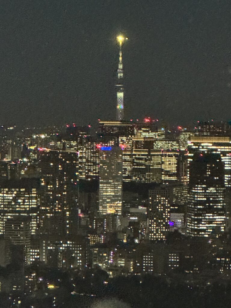 少し北寄りには、大手町のビル群の向こうにスカイツリーが見えました ひときわ強い灯りを放ち、東京の街と夜空の際に聳えています