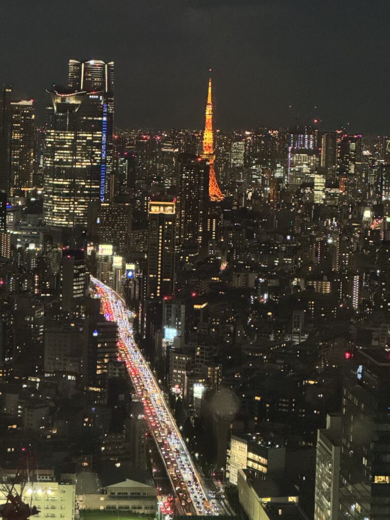 東京タワー方面、首都高速3号線が下りのヘッドライトと上りのテールライトがキラキラと綺麗でした