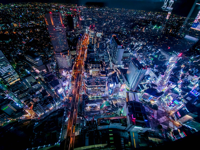 雨なので屋上に出られませんでしたが、渋谷スクランブルスクエアビルの最上階から夜景を楽しみました