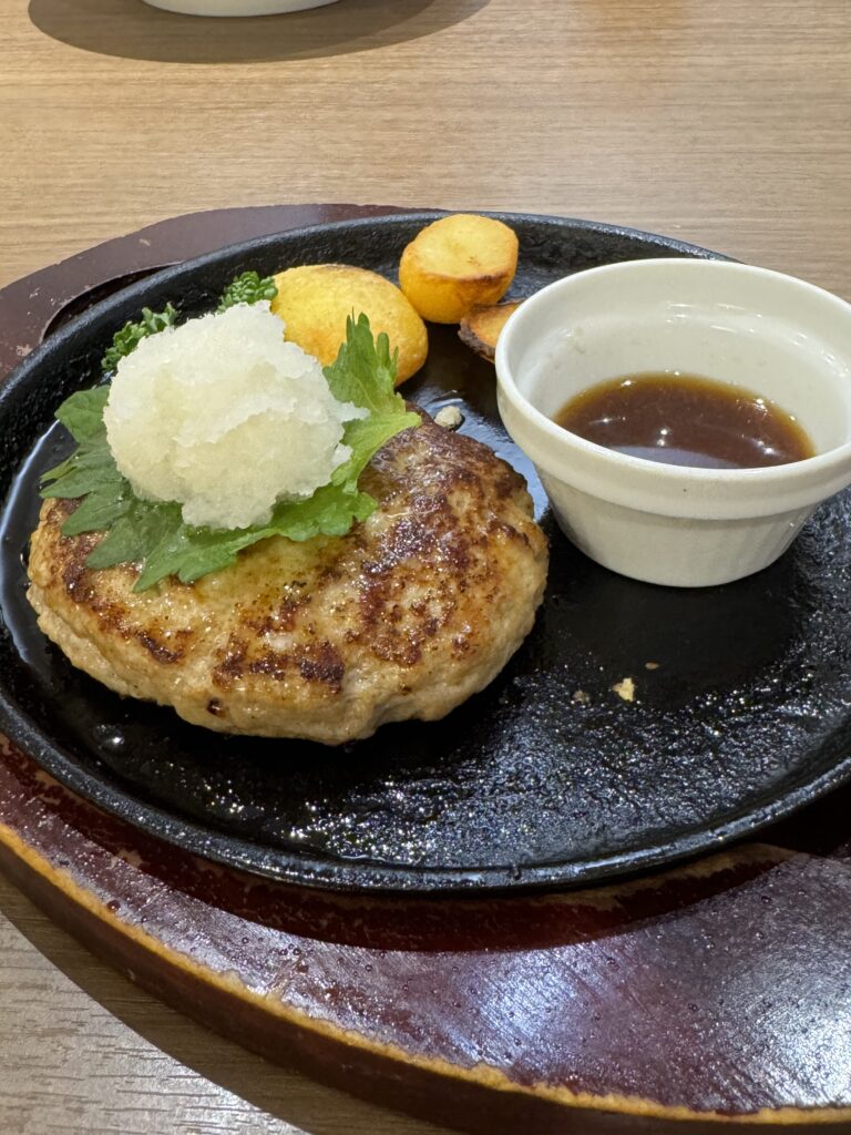 お箸でいただく大根おろしの和風ハンバーグ 日本のデニーズのハンバーグはとても美味しいです 多分Pre -Cookされているのを温め直し、焼き直しているのだと思いますが、小慣れた安定の味、ほっとします