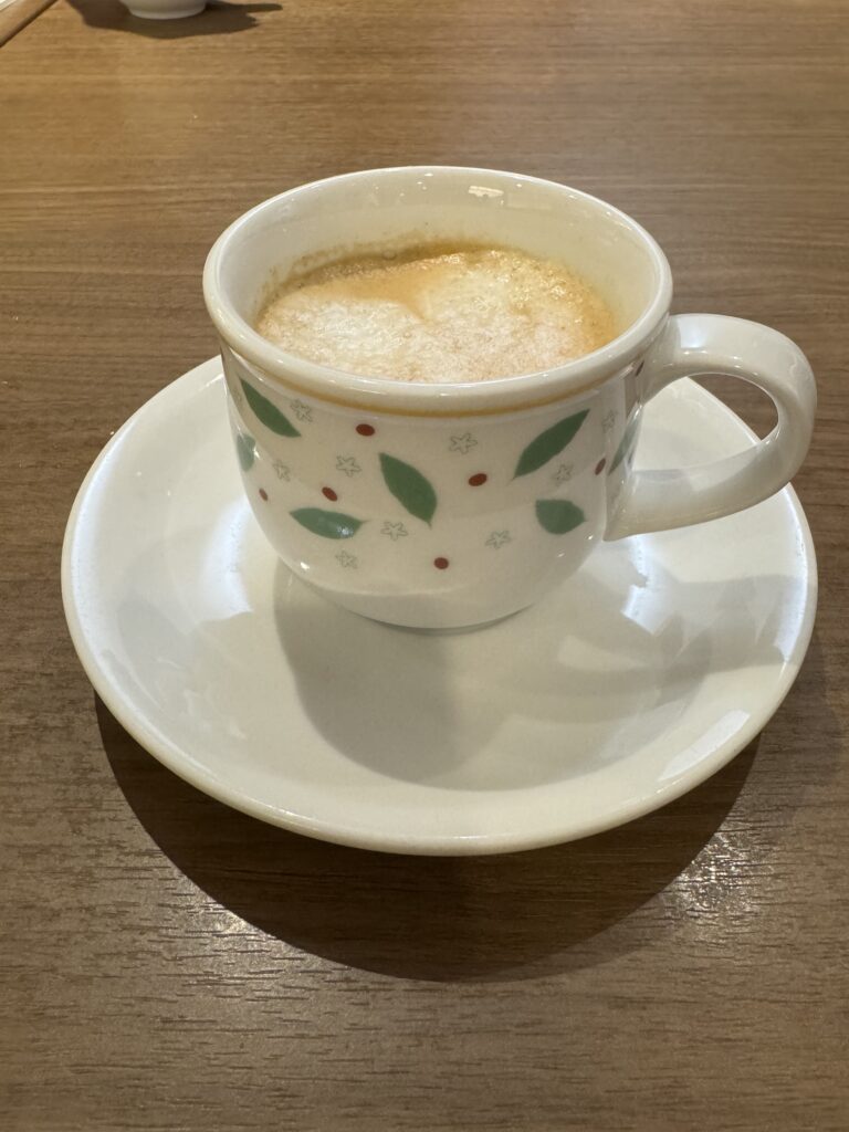 ドリンクバーではジンジャエールをいただきましたが、食後は、カフェラテで過ごしました