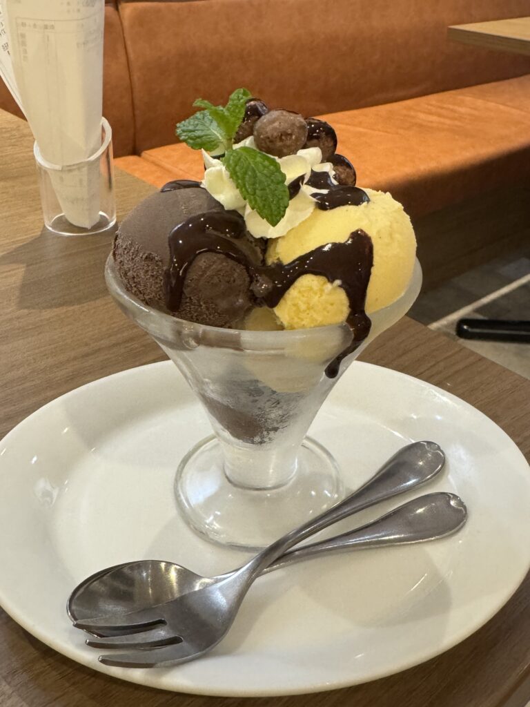 メインを平らげた後は、寛いでチョコレートパフェをいただきました