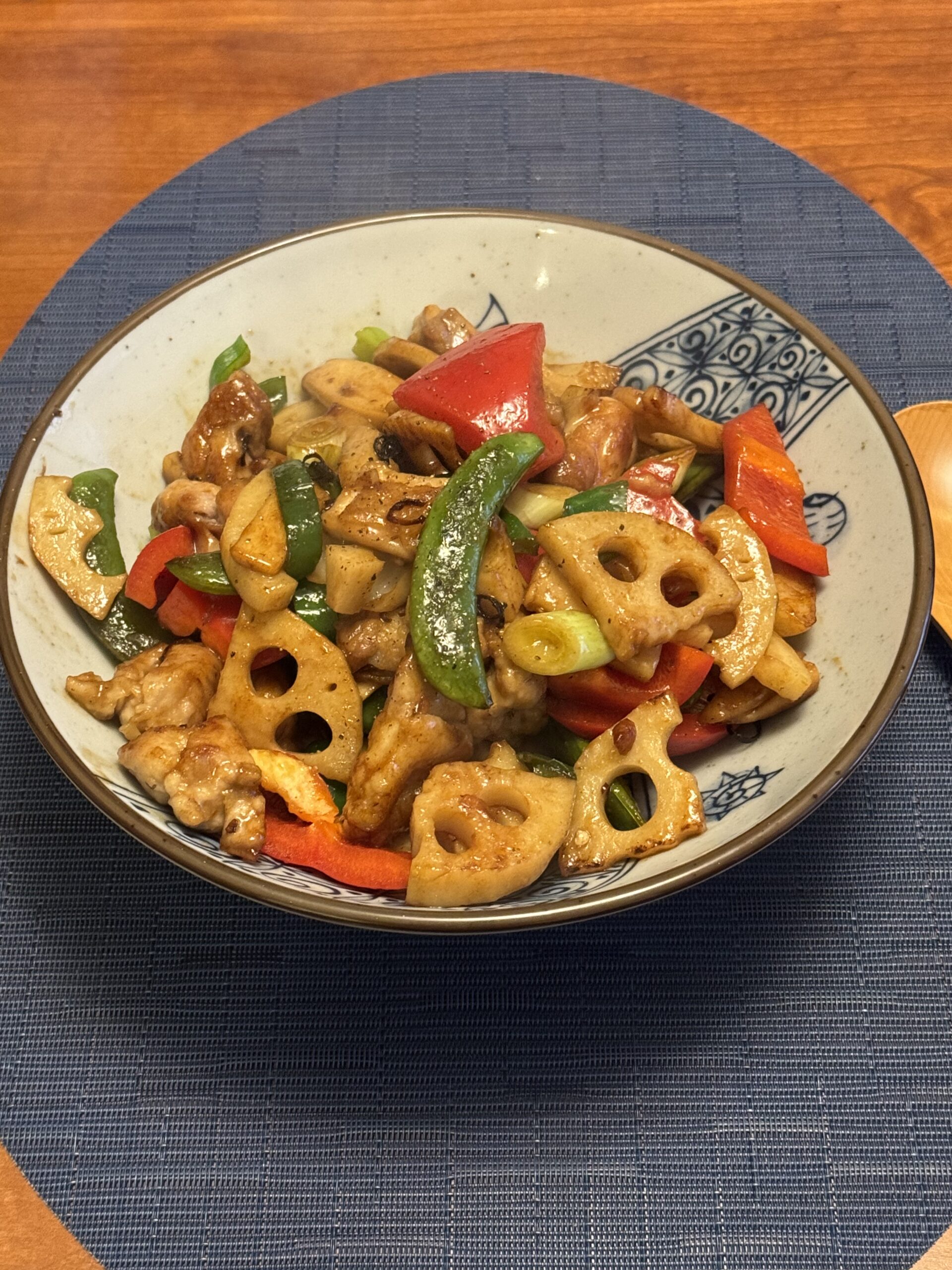 いろんな色の野菜が炒められて、大皿の中が賑やかです 取り分けて食べると食感もいろんなものがあり、楽しく食べました