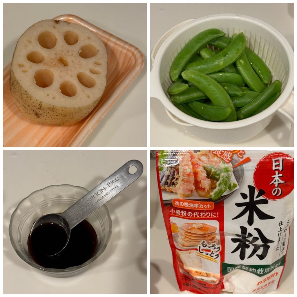 左上 食感を楽しくするためにレンコンを買ってきました この時期が旬 安いです 皮を削いで、準備します