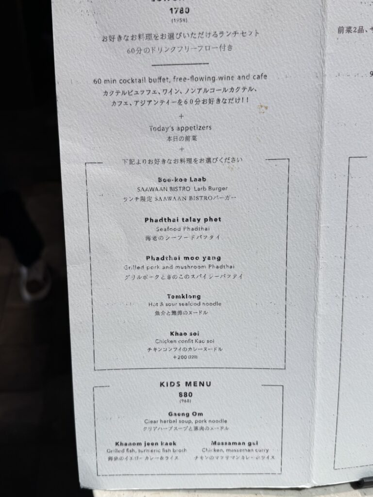 妻が評判を聞きつけて行ってみようとなったサーワーンビストロは、コスパが優れているだけでなく、ランチでも納得の美味しさがありました この3Fはいろんなお店があって楽しいですね