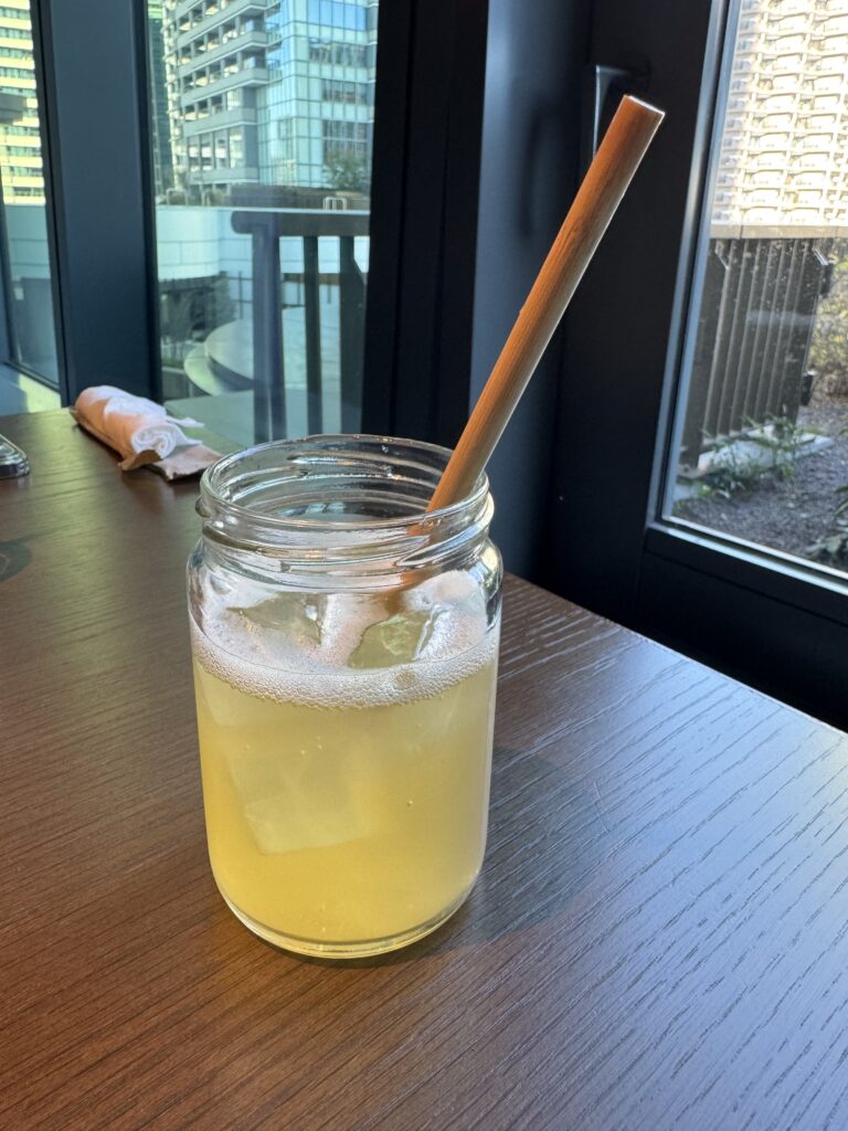 ドリンクフリーフローから特製のレモネードをいただきました 爽やかな酸味がバーガーやライスに合うように思い、手に取りました