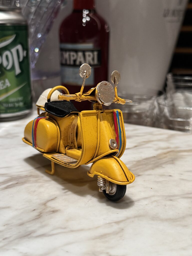 そんなときに、夫婦でゆっくりランチをいただくのが恒例行事になりました お店に飾ってあったベスパ、我が家にもあるので、思わず手に取ってカウンターに置いて写真に取ってみました