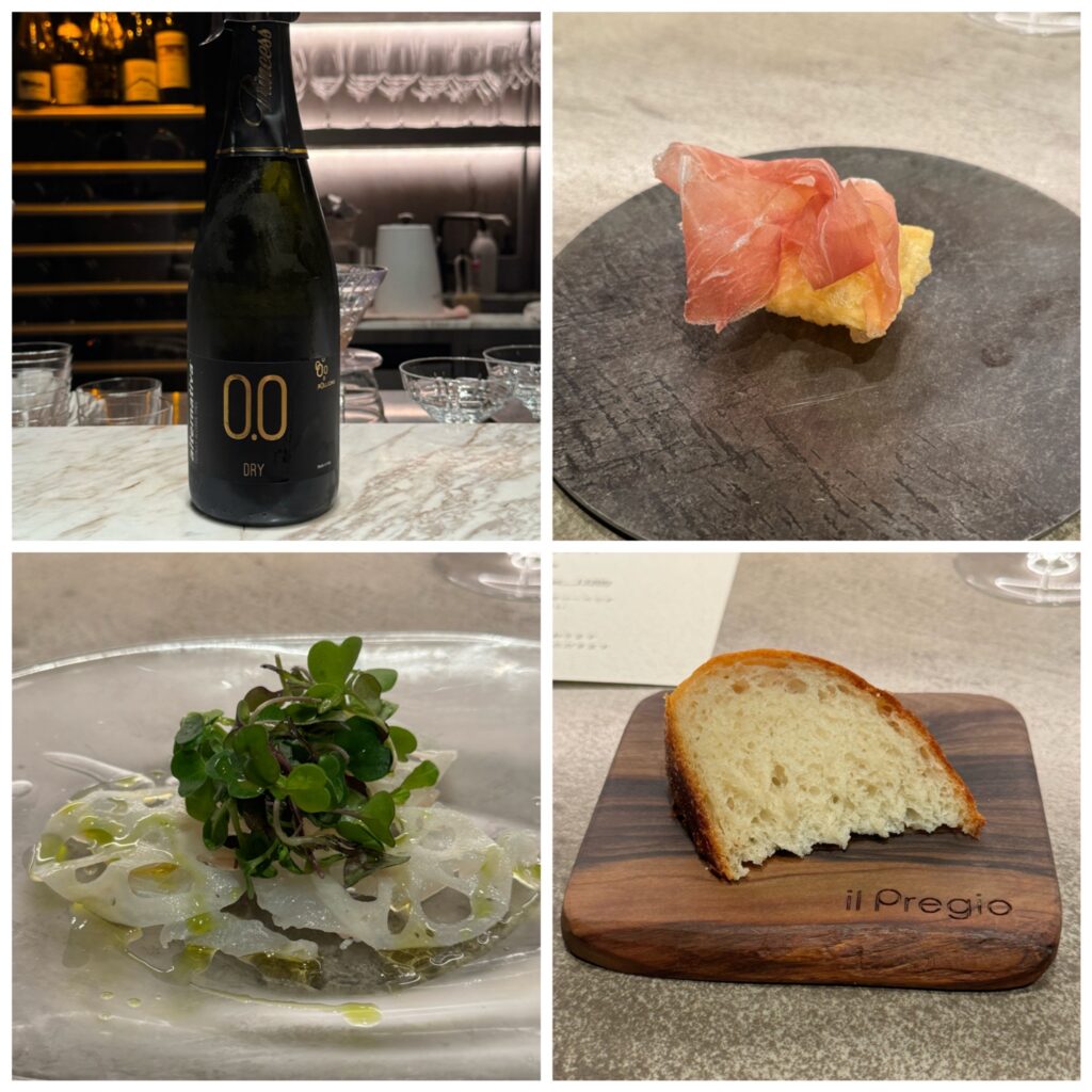 右上は、一品目 生ハムとイタリアの揚げパンであるニョッコフリット 生ハムとシャンパン🍾、合いますよね!