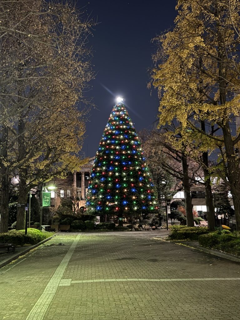 人材紹介でお世話になった方と表参道のデンクシフロリで会食してきました 待ち合わせに少し時間があったので、母校のツリーにご挨拶してきました