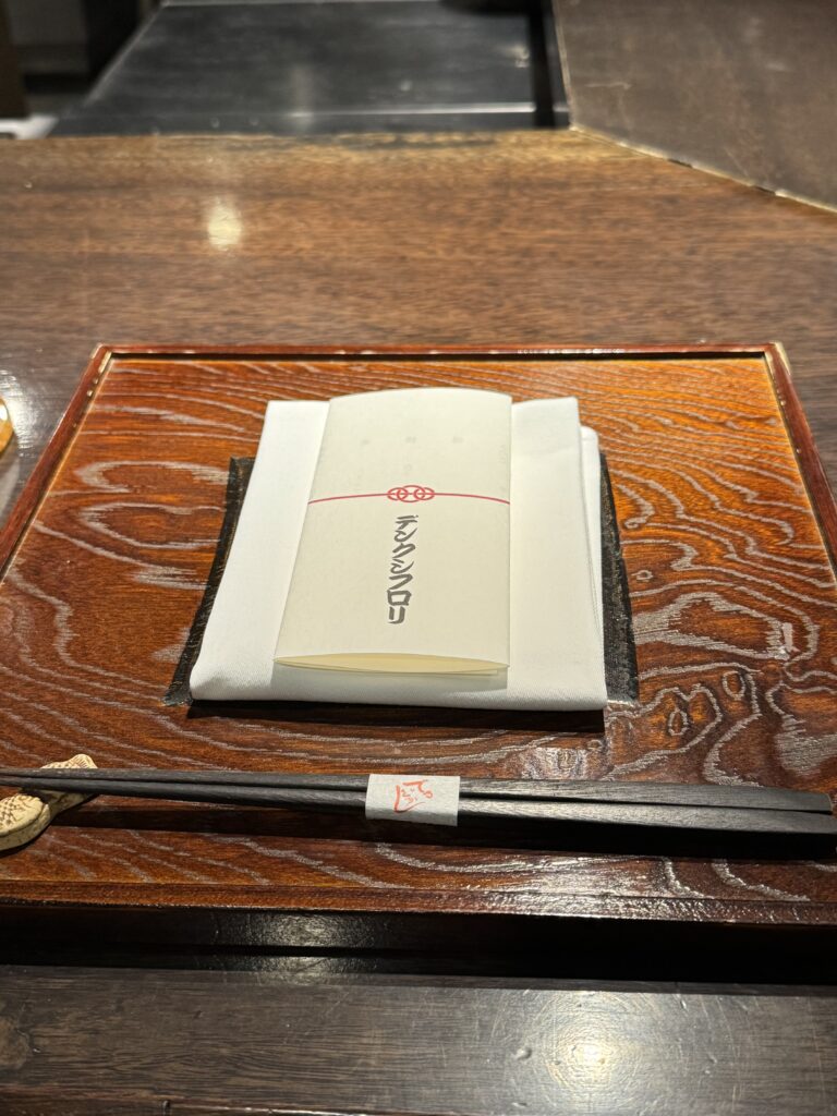 AI解説だと、「デンクシフロリ(DENKUSHIFLORI)」とは、日本を代表する二つの星付きレストラン「傳(でん)」の長谷川シェフと「フロリレージュ(Florilege)」の川手シェフが、「串」をテーマにコラボレーションした創作串料理店