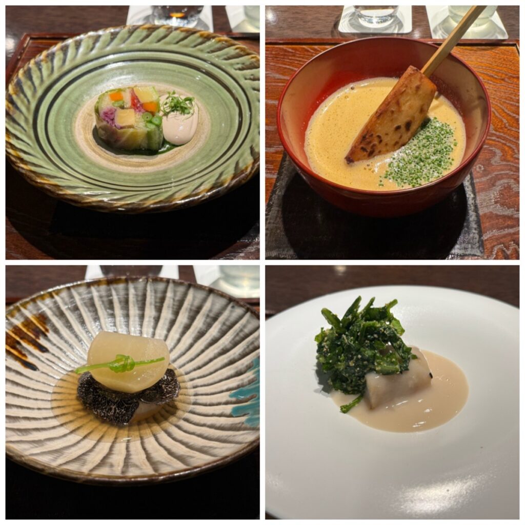 左下は、フォアグラに黒トリュフを乗せさらに蕪を乗せ、だし汁を纏わせたもの 贅沢に乗せたトリュフの香りが素晴らしかった