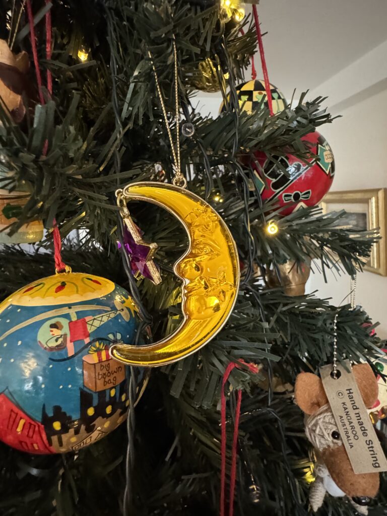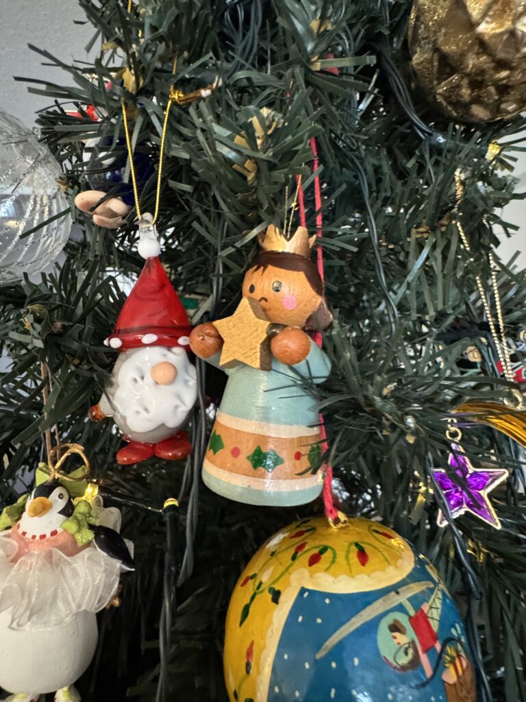 最も古いオーナメントは、天使の人形 1984年の結婚当時買ったものだから41年前のものです 羽が取れてしまいましたが、大事に飾ってます