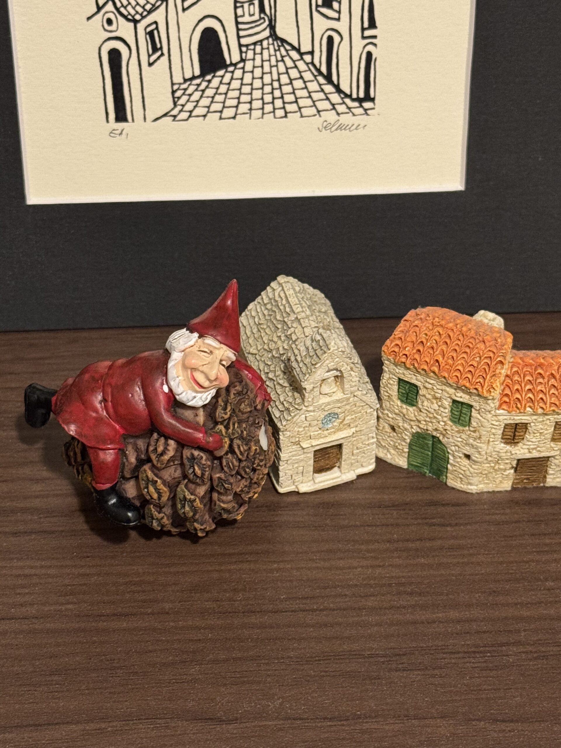 最初の写真は、長女からもらったドイツ土産のガーデンノーム 一昨年行ったクロアチアのドゥブロヴニクの街並みと合わせてトイレにディスプレイされています